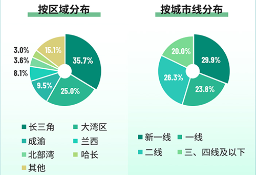 截至2020年12月31日,集团在管项目达到2877个,覆盖全国31个省、直辖市和自治区,163座城市。在管面积的35.7%位于长三角城市群,25.0%位于粤港澳大湾区,9.5%位于成渝城市群,8.1%位于兰西城市群,3.6%位于北部湾城市群,3.0%位于哈长城市群,其余分布于中国其他区域。按城市线分布,新一线29.9%,一线23.8%,二线26.3%,三四线及以下20%。