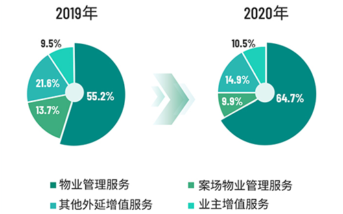 规模扩张、多元发展是当下物企破圈前行的核心竞争力。2020年,雅生活集团通过获取股东优质项目、第三方市场拓展等内生增长模式,协同资本驱动外延增长,助力集团规模强势增长,业态布局均衡,进一步深化了全业态、全产业链布局。按在管面积划分,住宅40.4%,公建46.5%,商业及综合体13.1%。按收入划分,住宅43.1%,非住宅56.9%。在合约面积中,第三方项目占比提升至74.1%。